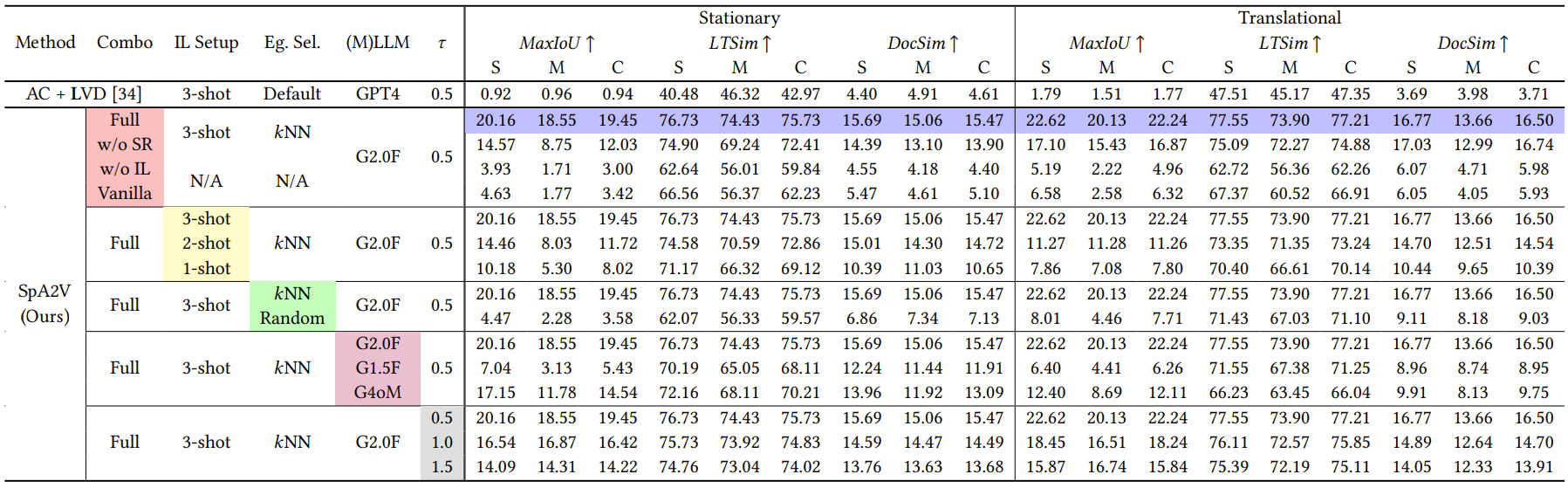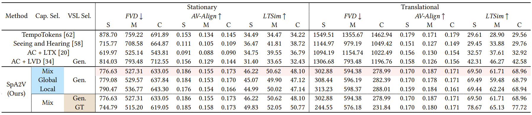 Stage-by-stage quantitative comparison of SpA2V and aforementioned baselines together with ablation studies in Audio-driven Video Planning and Layout-grounded Video Generation respectively.
